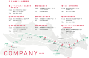 ヒーリング・スポット鍼灸整骨院グループは、現在京王線沿線に9院を展開しています。